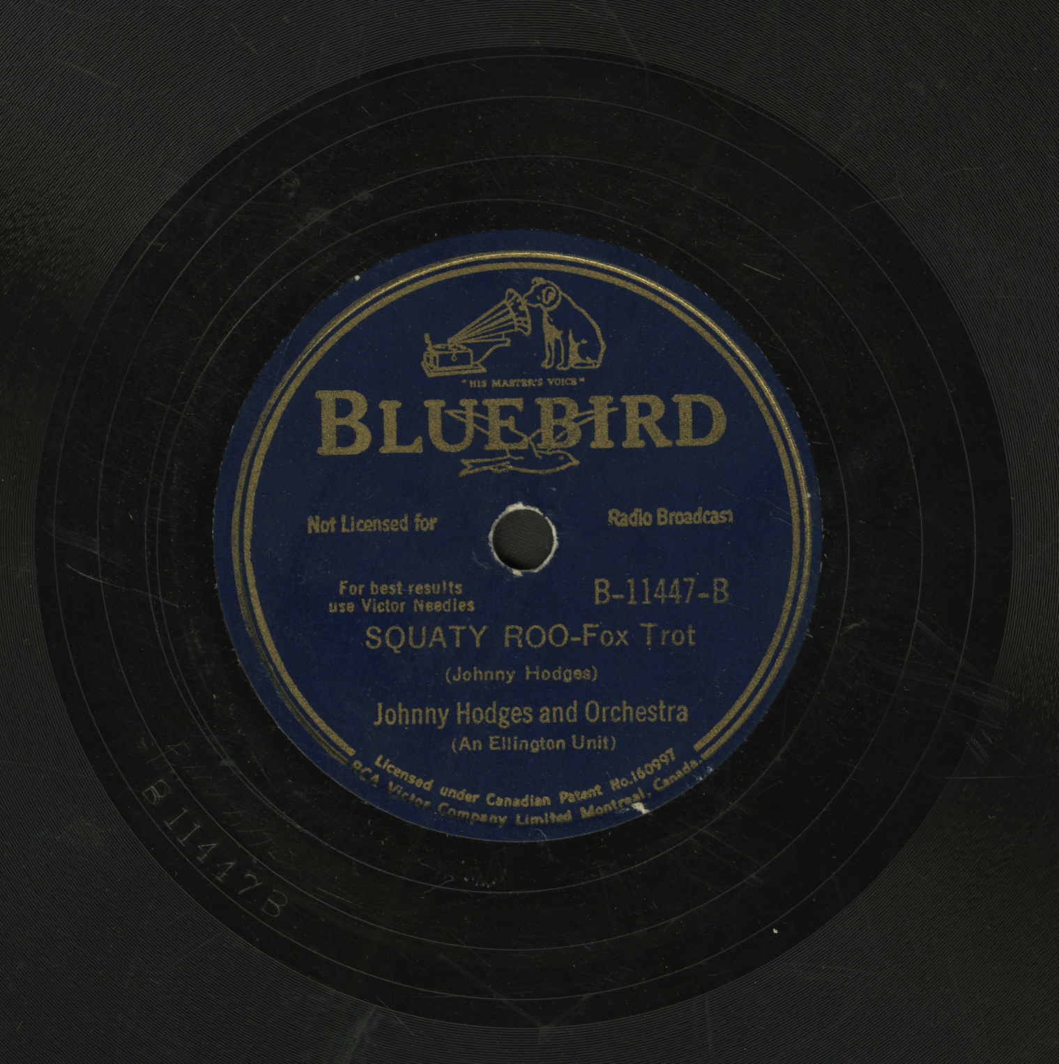 Label Bluebird Label Number B 11447 Details Size 10" Playback Speed 78 Contains Size, Playback Speed, General Material etc. Side A Side Image Run-Out Numbers B 11447 A Other Run-Out Indicators B 11447-A Tracks Things ain't what they used to be Performer/Group Johnny Hodges and his Orchestra Duke Ellington (pn) Ray Nance (tpt) Lawrence Brown (tbn) Johnny Hodges (as, sop) Harry Carney (bar) Jimmy Blanton (b) Sonny Greer (dr) Duration 00:03:37 Place of Recording Hollywood, CA Date of Recording 03 JUL 1941 Authorized Matrix Number BS 061348-1 Authority Source RCA FXM1-7274 TJD [H6719] Side B Side Image Run-Out Numbers B 11447 B Other Run-Out Indicators B 11447-B Tracks Squatty roo Performer/Group Johnny Hodges and his Orchestra Duke Ellington (pn) Ray Nance (tpt) Lawrence Brown (tbn) Johnny Hodges (as, sop) Harry Carney (bar) Jimmy Blanton (b) Sonny Greer (dr) Duration 00:02:24 Place of Recording Hollywood, CA Date of Recording 03 JUL 1941 Authorized Matrix Number BS 061346-1 Authority Source RCA FXM1-7274 TJD [H6719] Shelf Location 1007870734